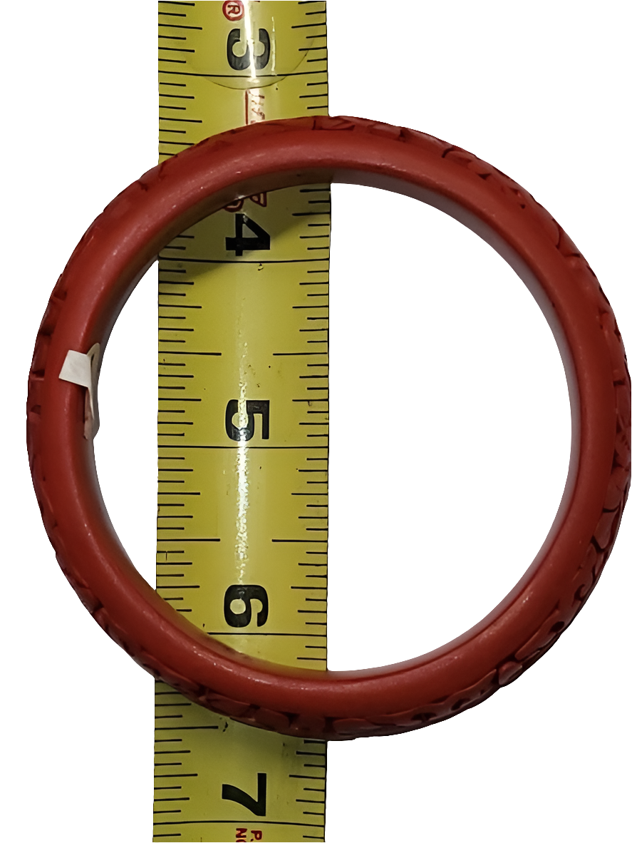 This hand-carved red floral bangle is not just a piece of jewelry—it's a work of art that reflects tradition and elegance. The detailed floral carvings provide an artistic flair, while the bold red color and wider band make it a standout accessory. Whether you’re adding a unique piece to your collection or looking for a thoughtful gift, this bracelet promises to bring charm and character to any jewelry wardrobe.