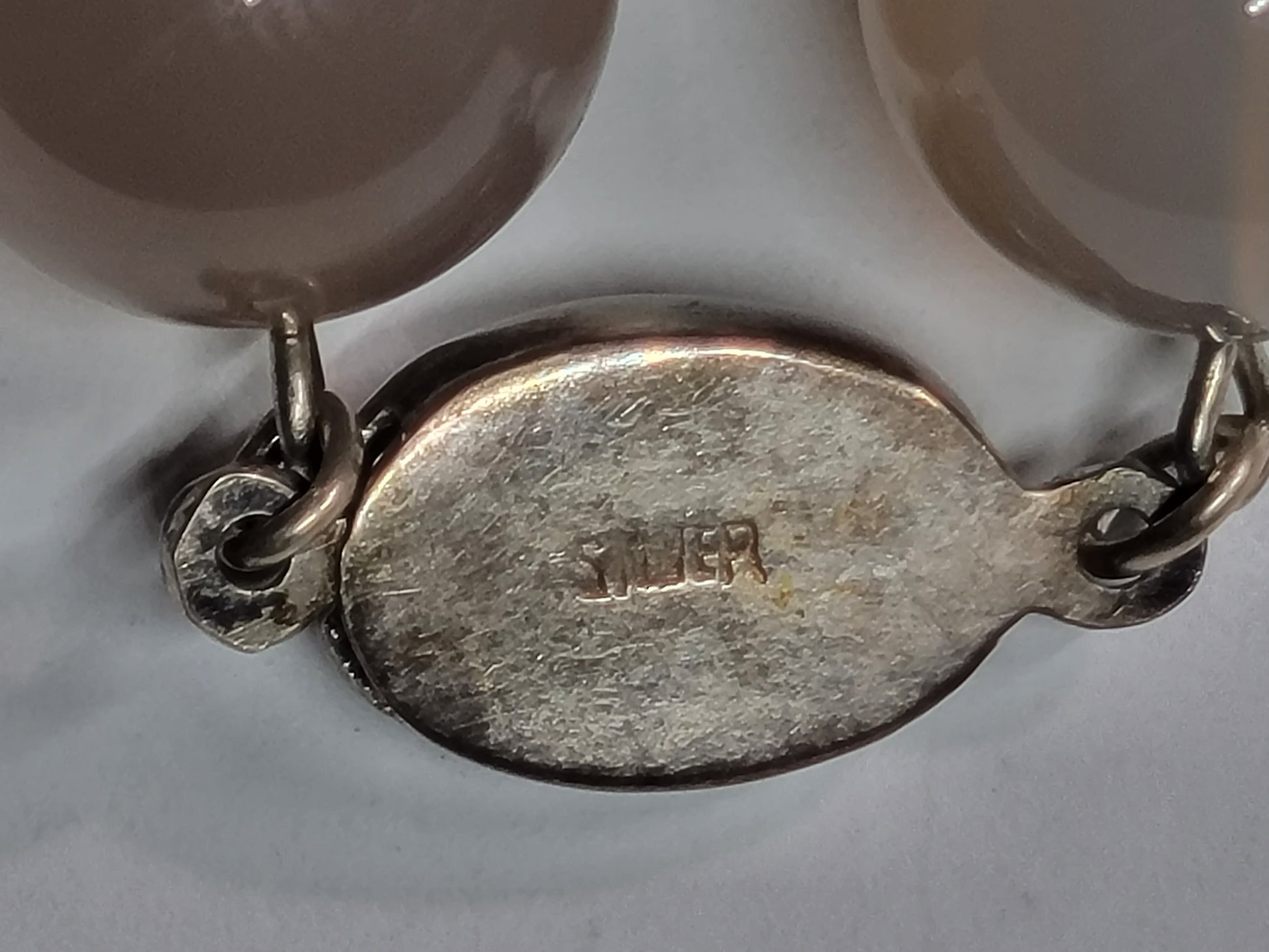 Handcrafted Stone Beaded Necklace with Silver Clasp and Hand-Painted Bead Chinese Artistry