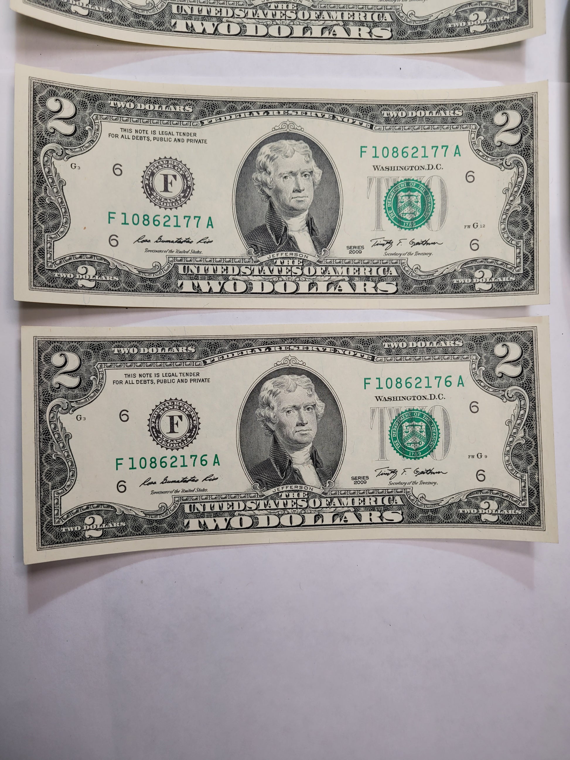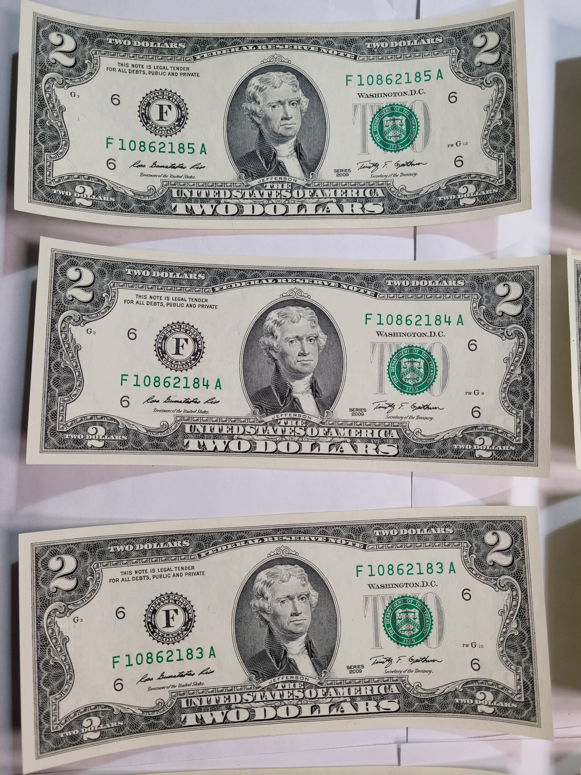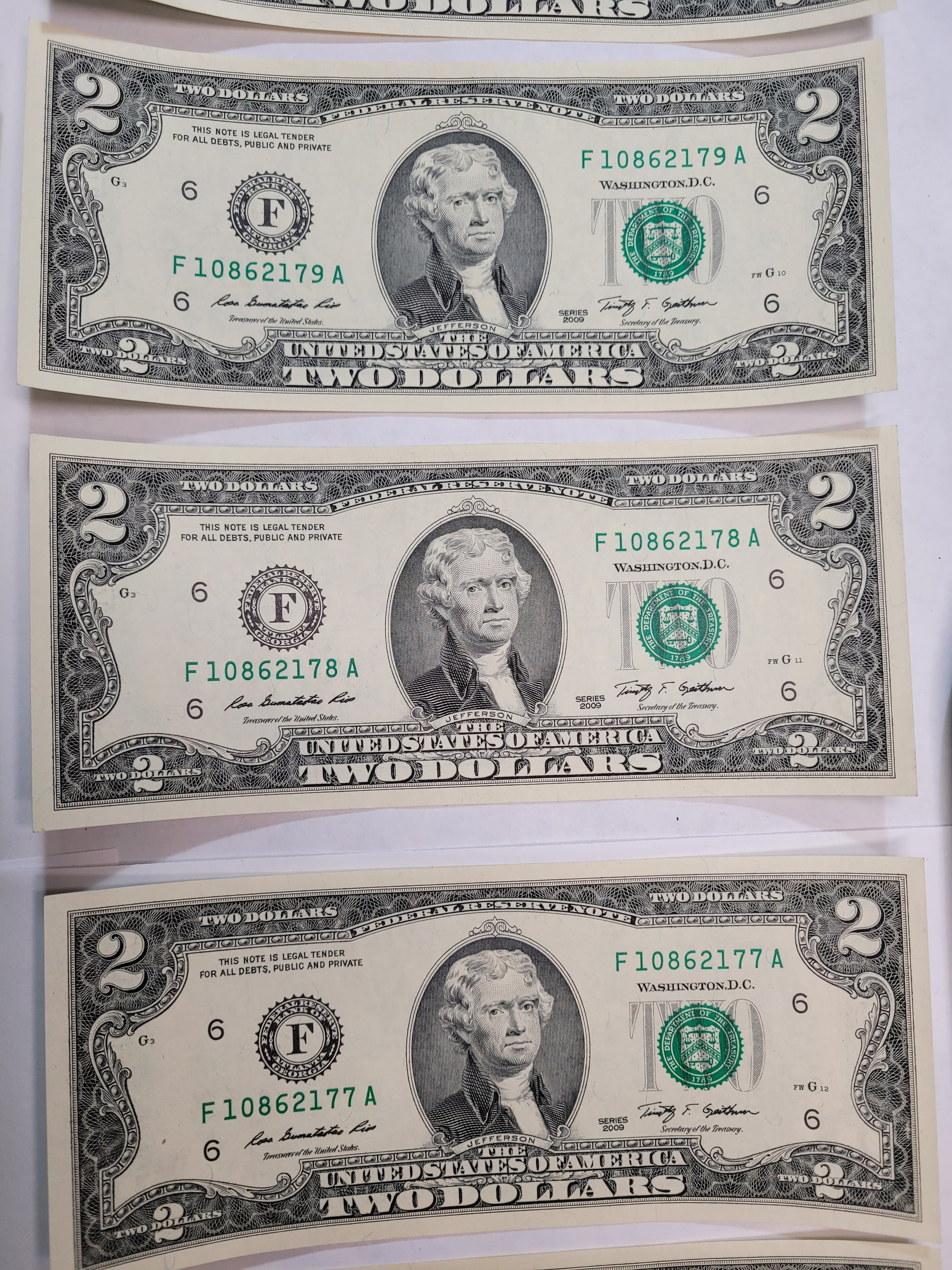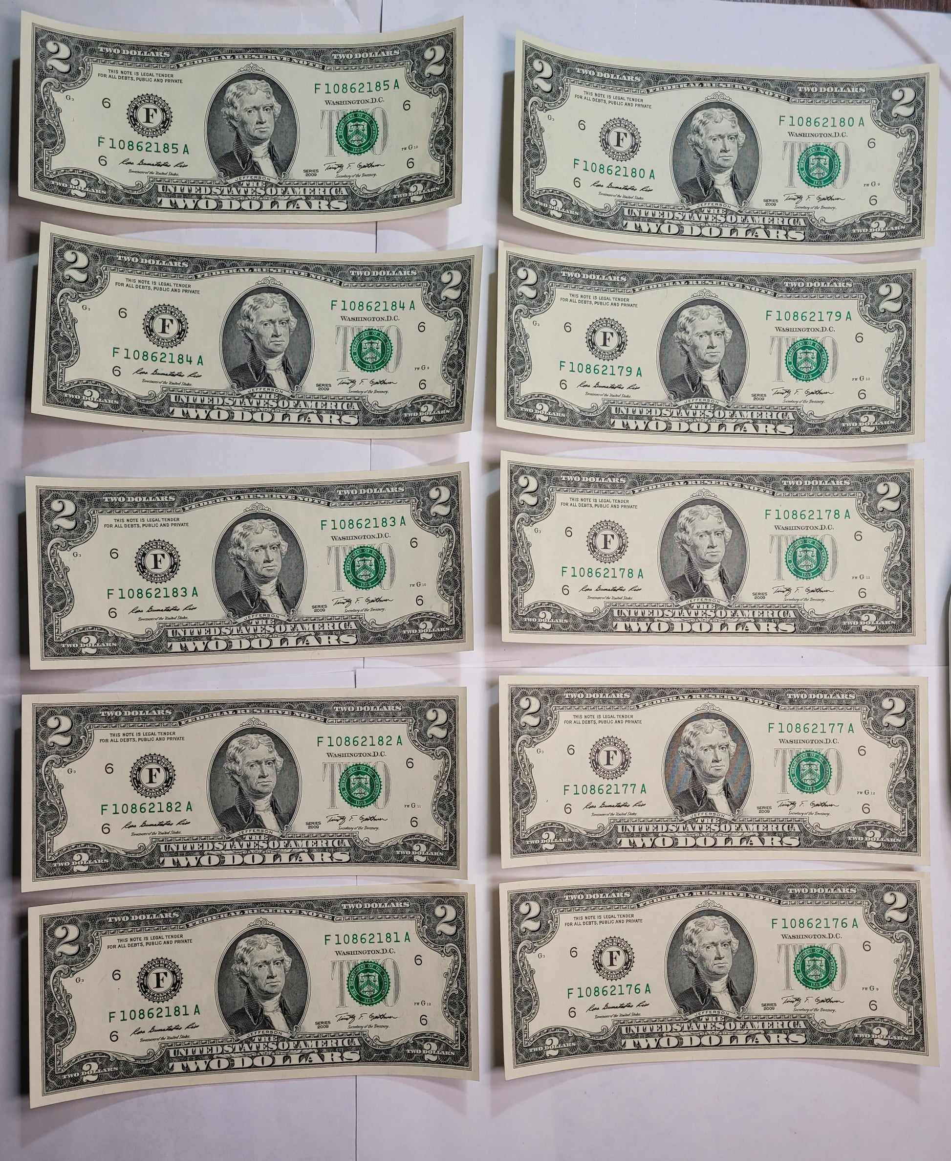 Lot of 10 Sequential $2 Federal Reserve Notes - Unique Collectible with Consecutive Serial Numbers