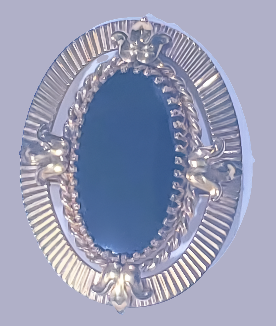 Vintage Black Onyx Pin Brooch 1/20 12K G. F. Maker mark in pics. There is a mark on the stone. I did not try to clean it off. I have taken pictures of it close up.