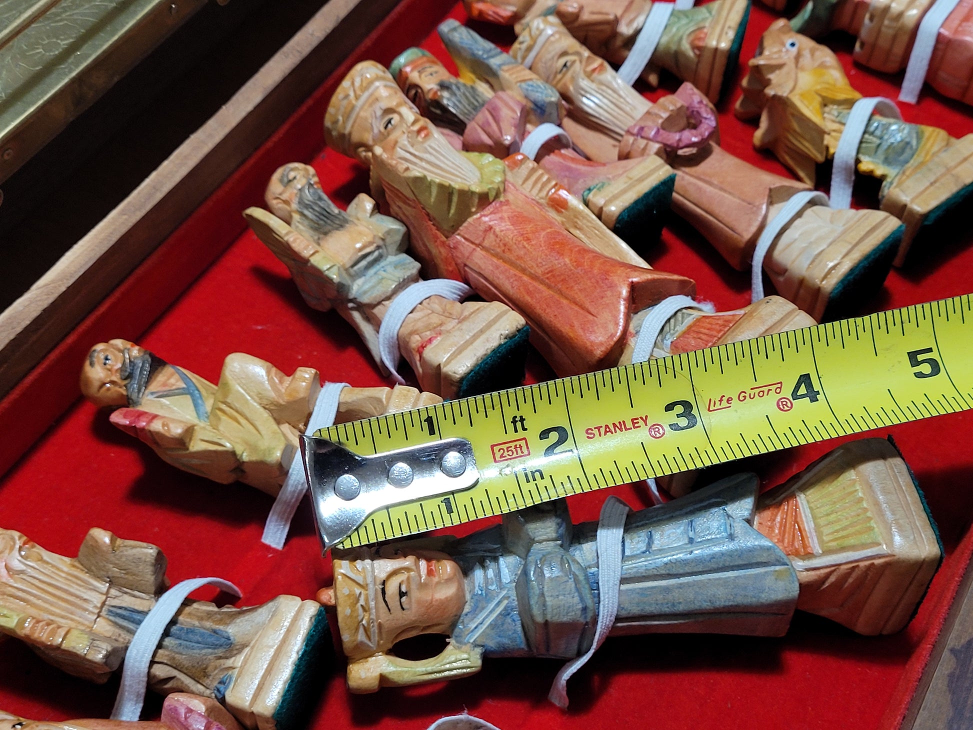 Detailed Chess Pieces: Hand-carved and hand-painted, each piece brings a story to life, measuring approximately 4 inches.