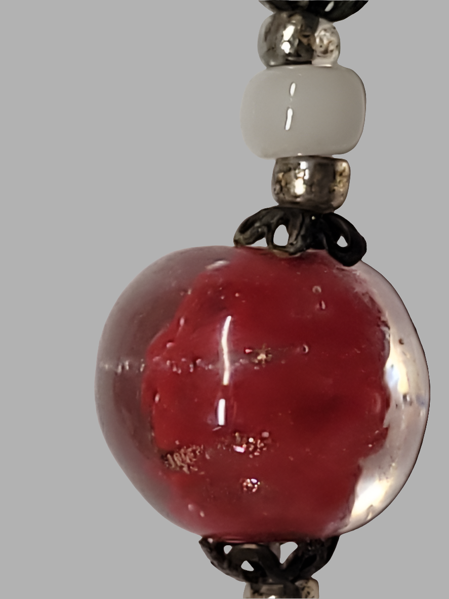 Vintage Hand Made Red and Green Glass Bead Necklace