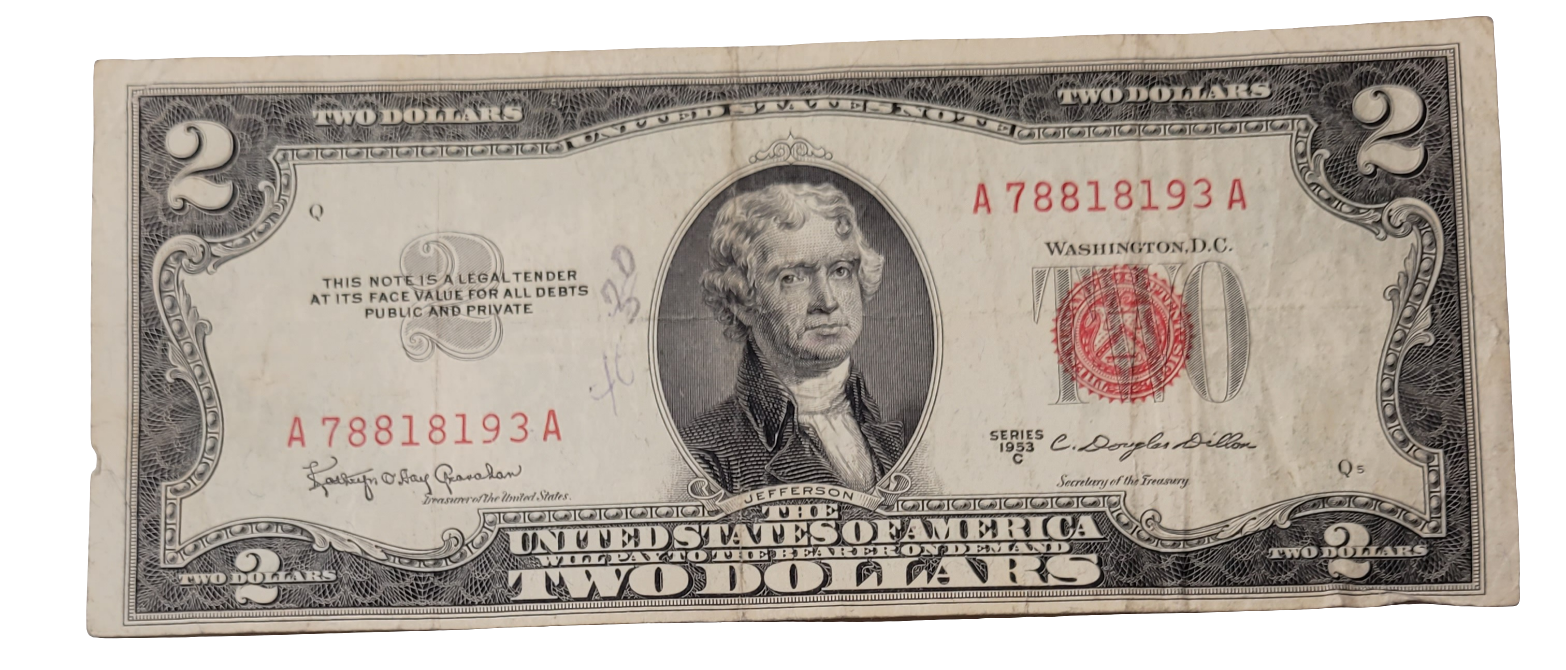 Vintage Series 1953C $2 United States Red Seal Note A78818193A - Collectible Historical Bill