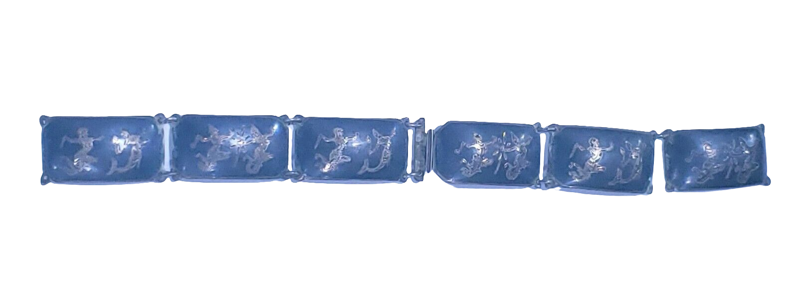 Vintage Sterling Silver Siam 6 Panel Black Niello Bracelet 6.5" Dancer Filigree